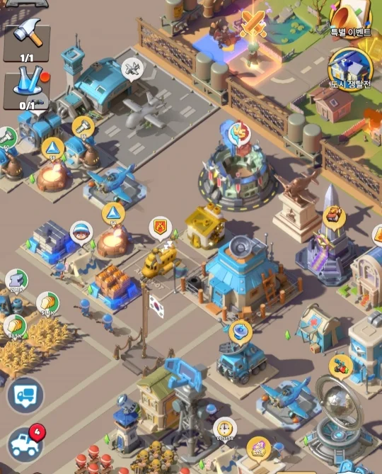 - 도시 건설과 자원 관리 - 본부를 중심으로 각종 시설을 건설하고 업그레이드