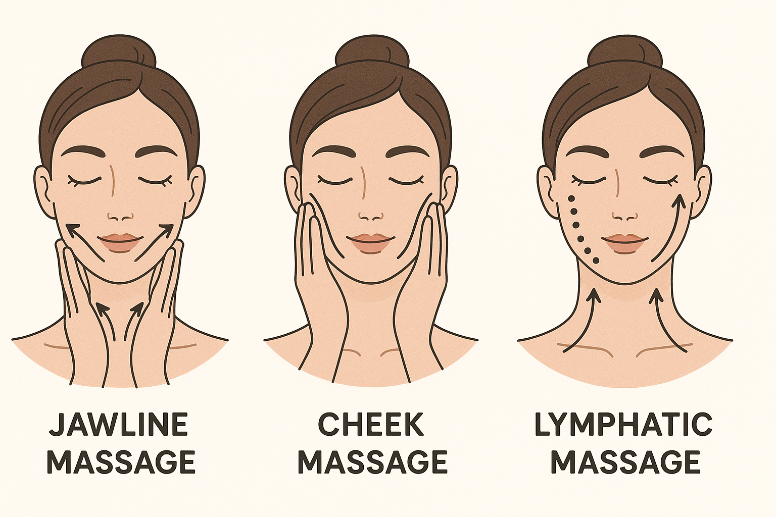 - 턱 끝에서 귀 아래까지 턱선을 따라 쓸어올리기 (각 5회)