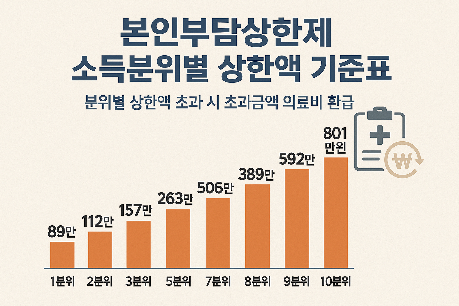 - 본인부담상한제: 연간 의료비가 소득별 상한액 초과시 환급