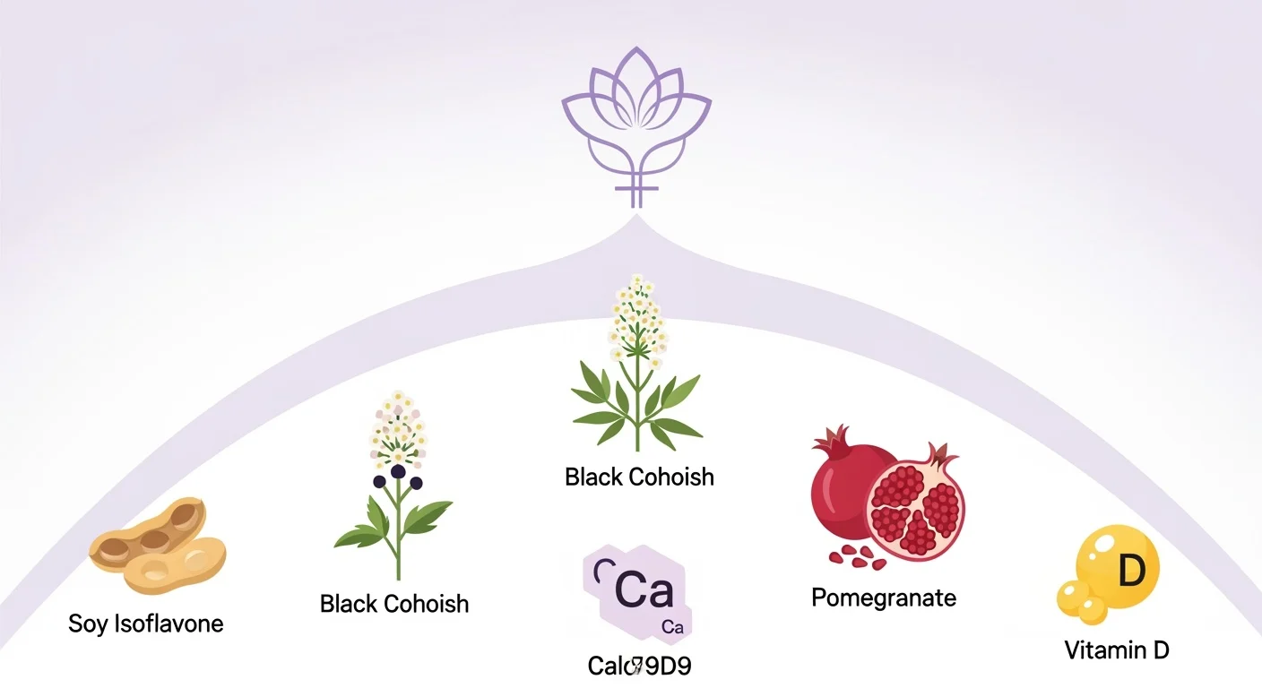 A. 천연 원료(블랙코호시, 석류 등)가 부작용이 적고 효과가 입증되어 선호됩니다. 합성 호르몬은 의사 처방 필수입니다.