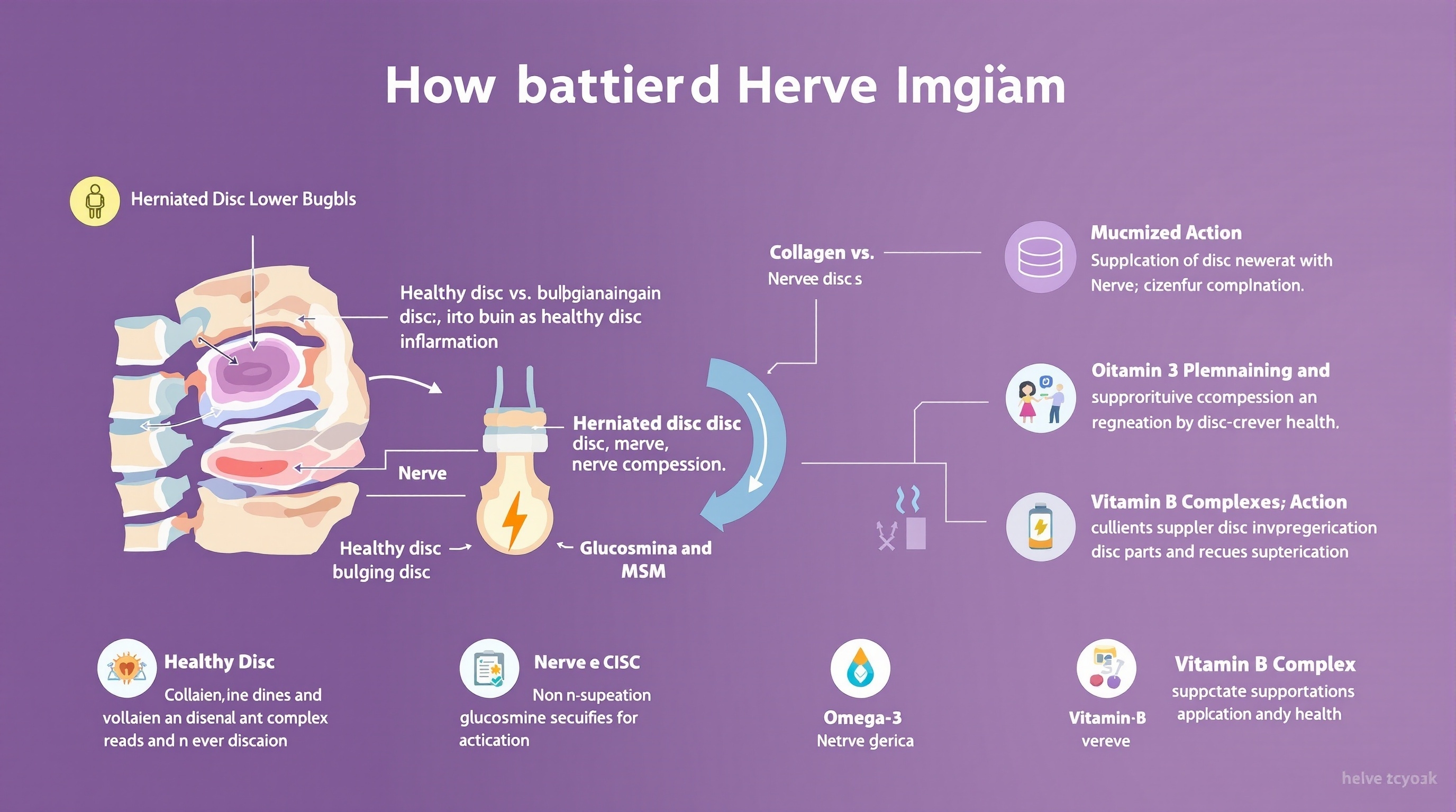 비타민B1(티아민)은 신경 전달 물질 합성, B6(피리독신)은 신경염 완화, B12(코발라민)은 말초 신경 재생을 촉진합니다. 방사통·저림증 50% 감소 (Neurology, 2023).